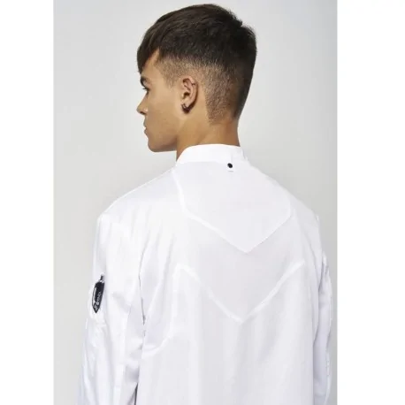 Its design with a side closure with a hook allows quick opening, and its mandarin collar with rib provides greater comfort to the cook. Like the sleeve cuffs, where the elastic rib provides greater comfort to roll up the sleeves.