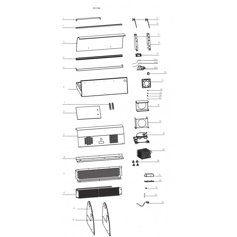 Curved Glass Showcase SC118L 1.1.E.E210.06 Exploded View 3