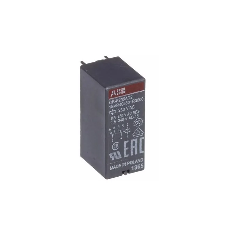 Print relay ABB 250V AC 2CO at 250V 8A connection pins raster size 5mm CR-P230AC2 1SVR405601R3000