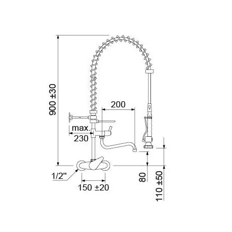 pre-rinse unit with wall-mounted water tap short lever with swivel tap connection ½"