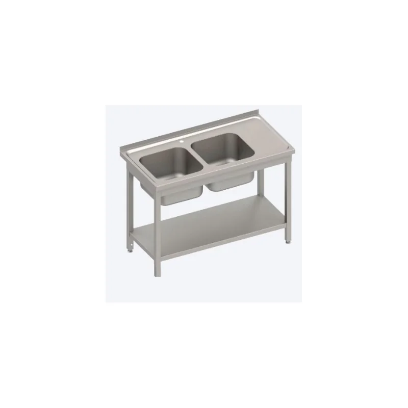 copy of Detachable Industrial Sink 2 Bowls Left Side with Base and 1 Shelf 600 mm Deep