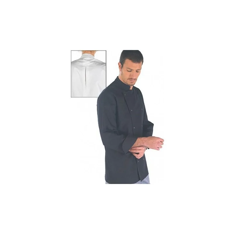 Unisex cross jacket with mao collar, fastens with 2 rows of automatic washer. Bag inside double bag in left sleeve and fold on back.
