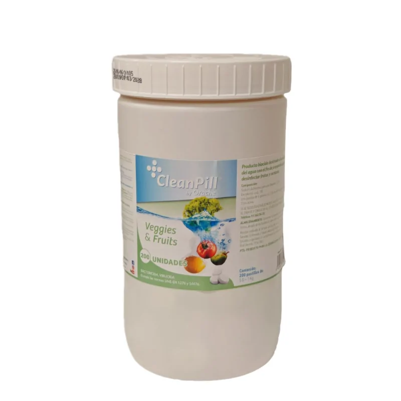 Disolviendo 1 pastilla en un bol con agua, y dejando las frutas y verduras 5 minutos en reposo, aseguramos una limpieza óptima antes de su consumo.