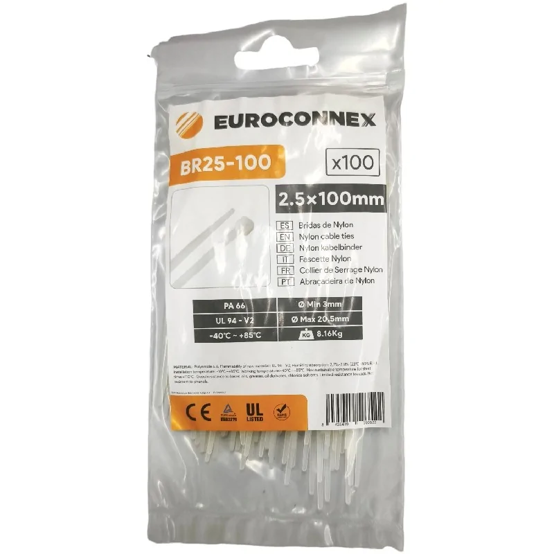 Collier de serrage en nylon blanc 100x2,5 mm 100 unités BR25-100