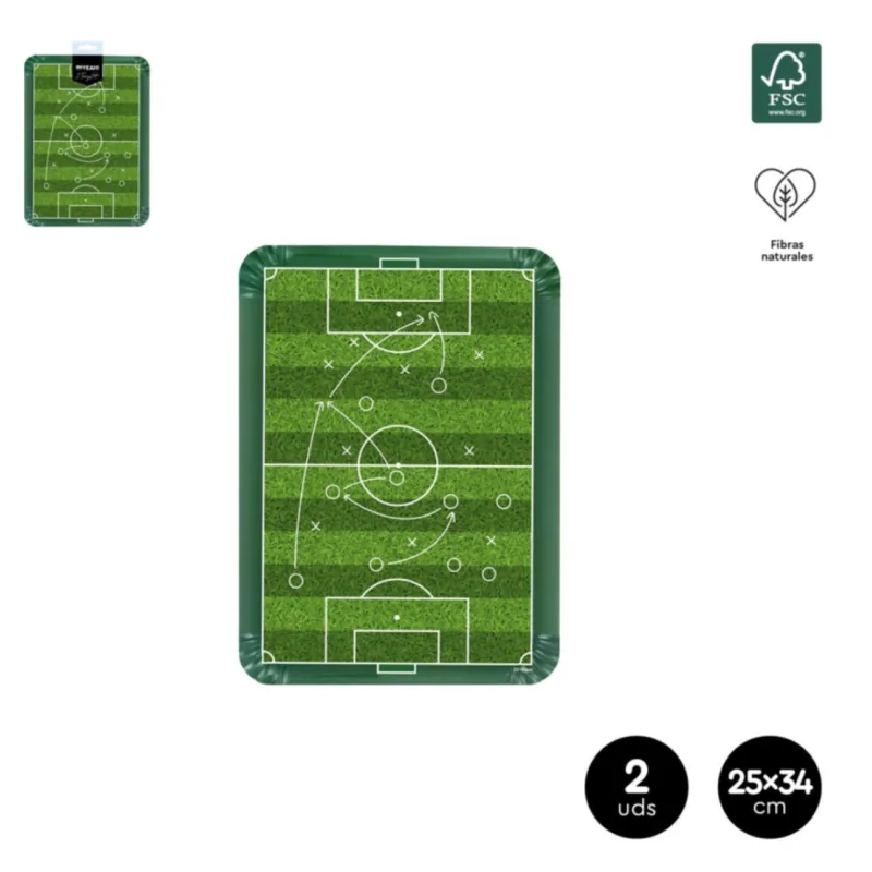 Bandeja cartón rectangular 25x34 cm FÚTBOL (2 uds)