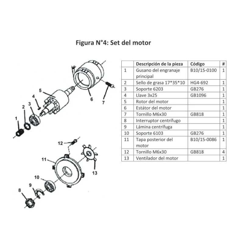 Spirale de traction Mélangeur B10Cr CT-B10L Vue éclatée 1 Dimensions 25x28mm Arbre Ø14mm